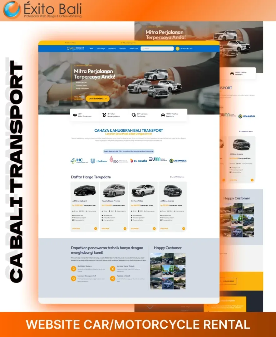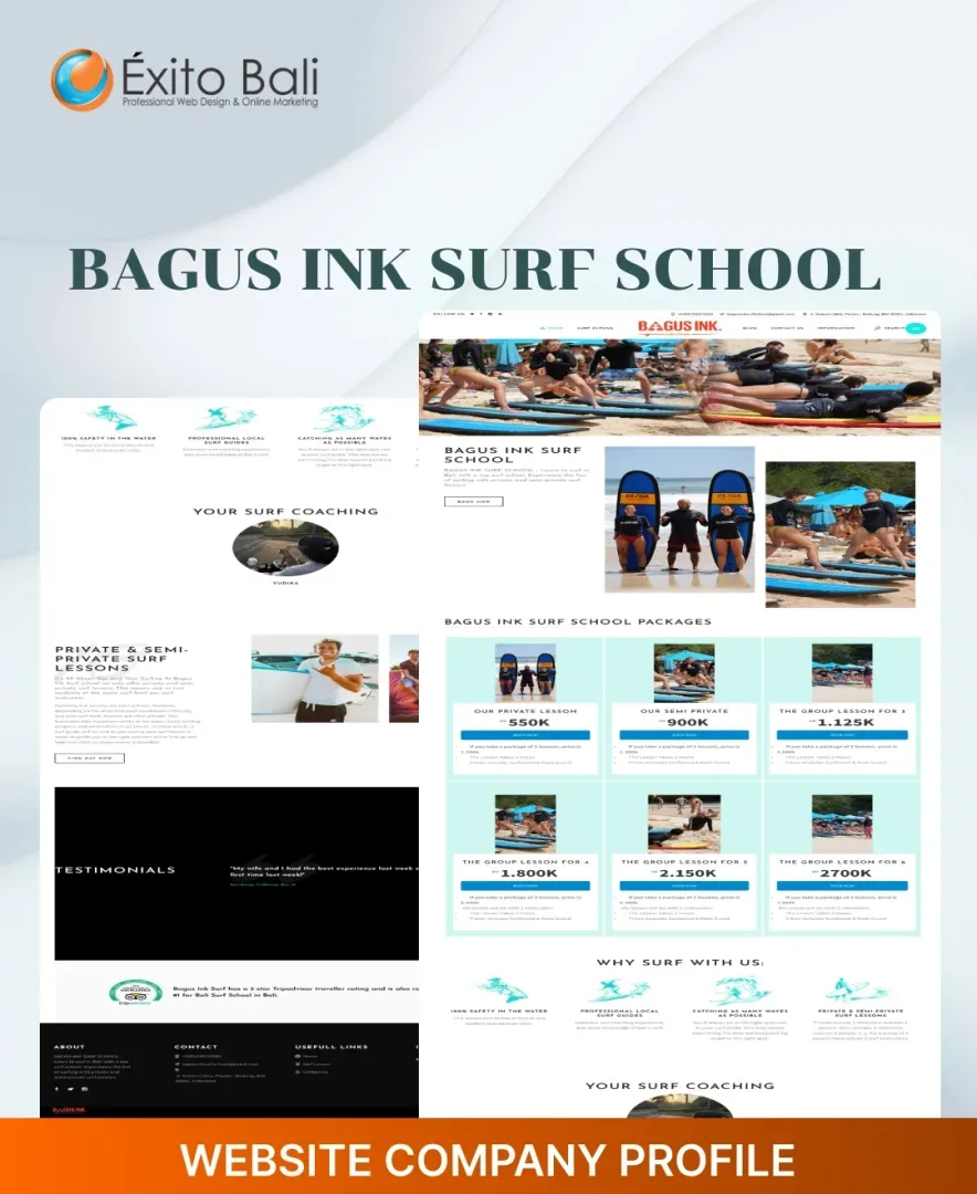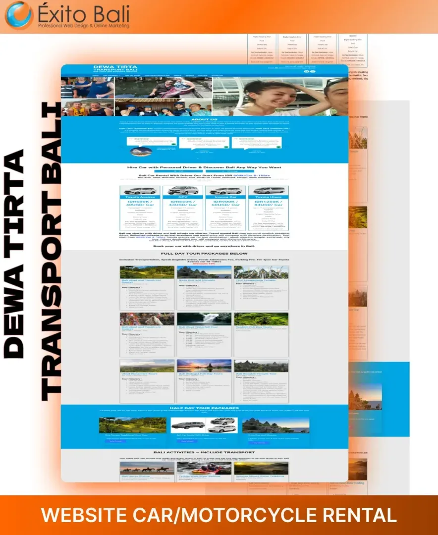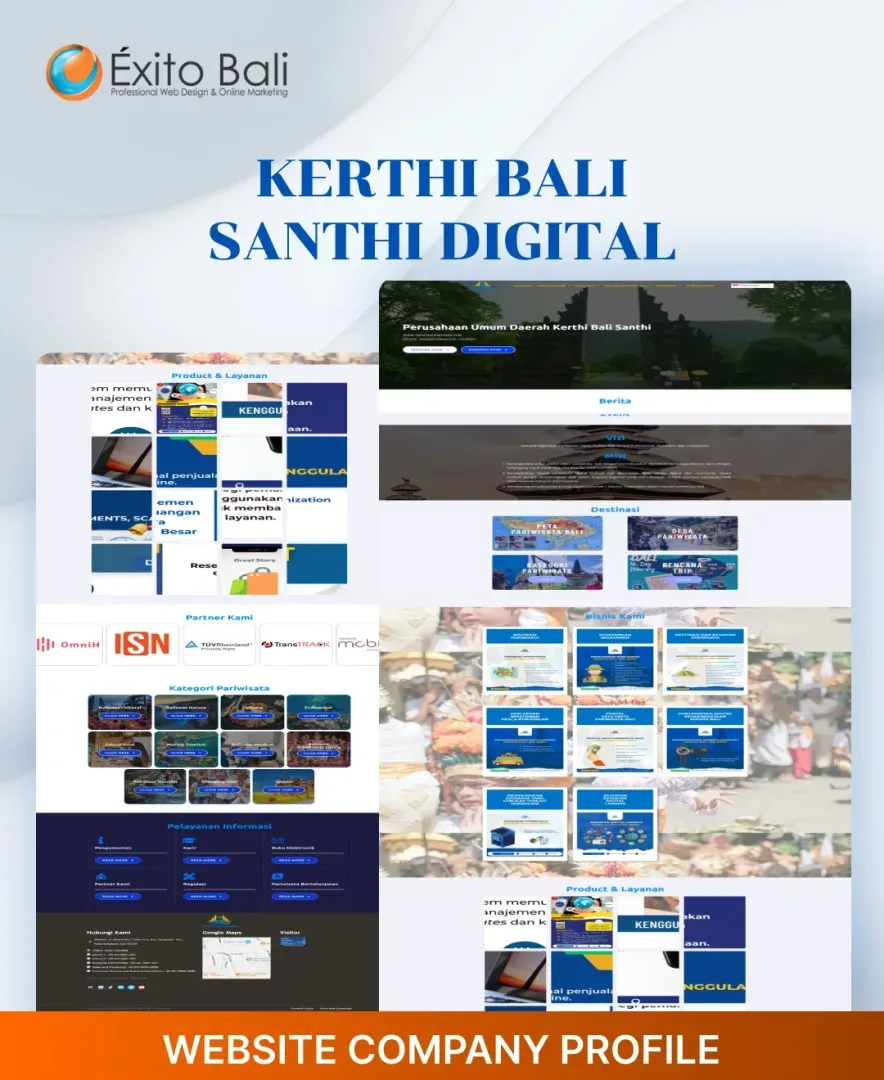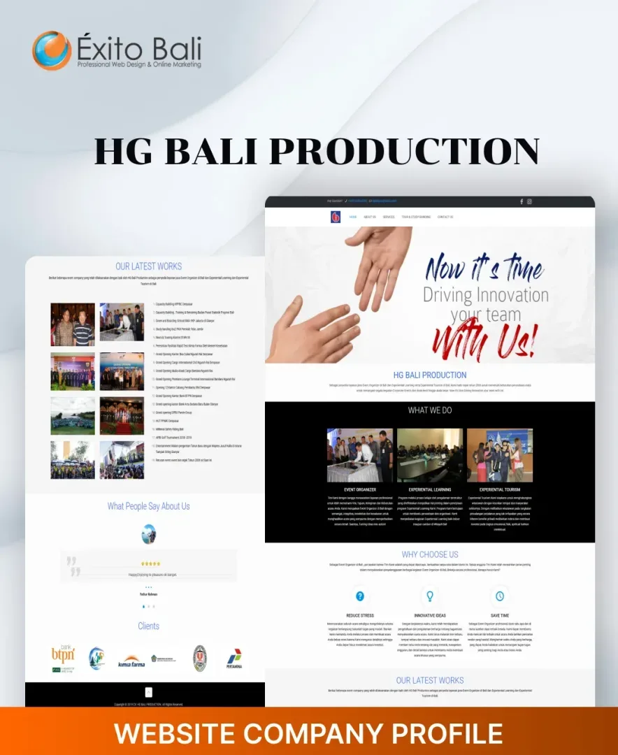 Exito Bali berusaha membuat tampilan website our client secara profesional sesuai dengan bidang usahanya dan terkesan unik serta kreatif. Dibawah ini Anda akan melihat beberapa klien yang telah mempercayai kami untuk mendesign dari awal websitenya dan ada juga yang merubah tampilan website awalnya menjadi lebih menarik dan sesuai dengan visi misi serta bidang usaha perusahaan. Oleh karena itu, jangan ragu dengan jasa pembuatan website kami yang sudah berpengalaman mendesign website dari berbagai bidang usaha.