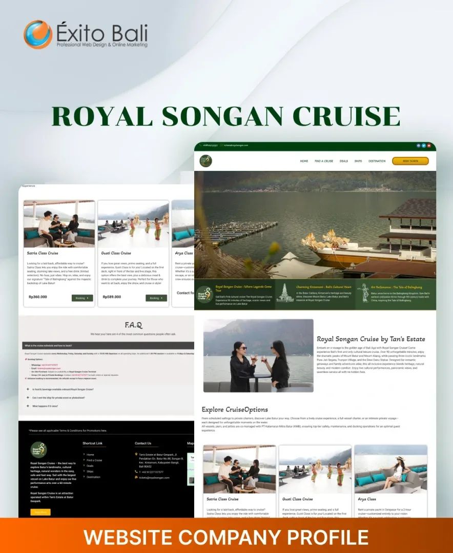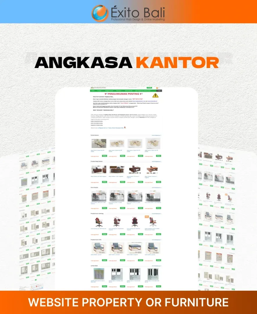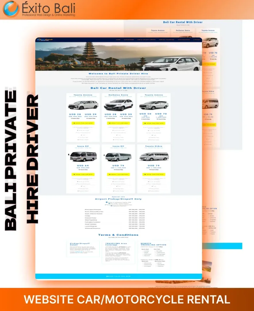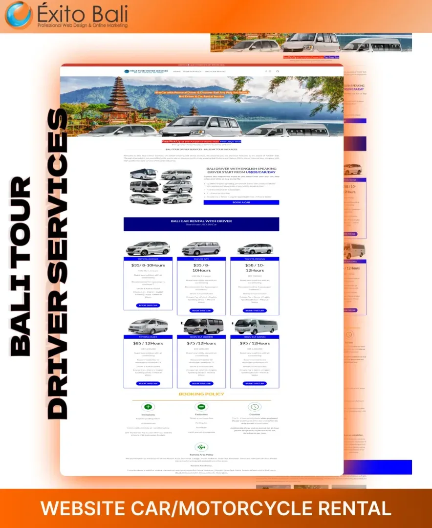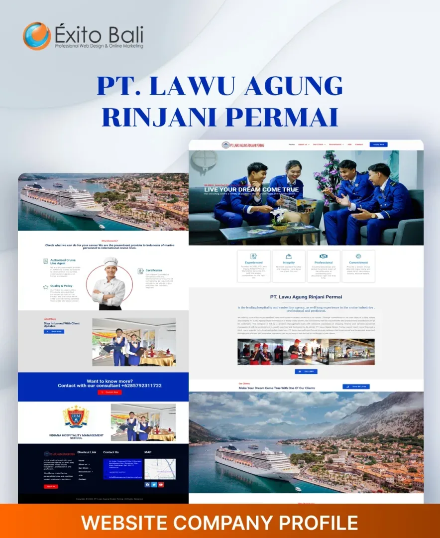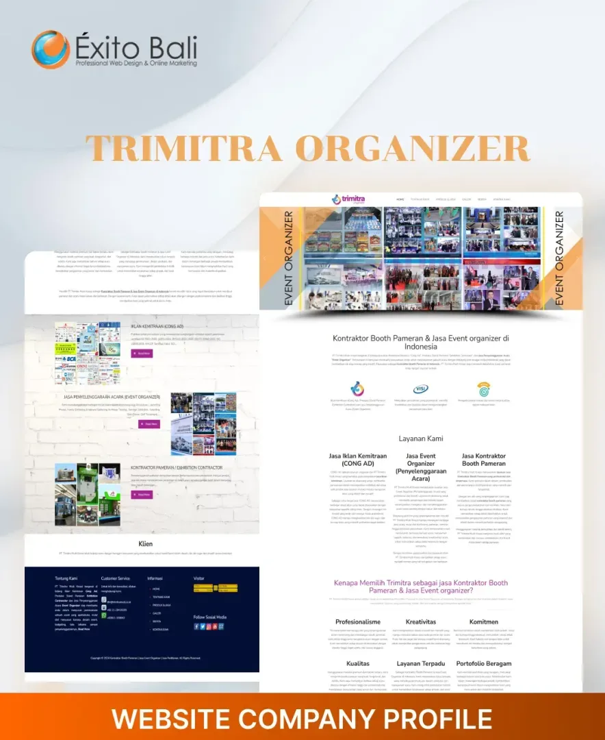 Exito Bali berusaha membuat tampilan website our client secara profesional sesuai dengan bidang usahanya dan terkesan unik serta kreatif. Dibawah ini Anda akan melihat beberapa klien yang telah mempercayai kami untuk mendesign dari awal websitenya dan ada juga yang merubah tampilan website awalnya menjadi lebih menarik dan sesuai dengan visi misi serta bidang usaha perusahaan. Oleh karena itu, jangan ragu dengan jasa pembuatan website kami yang sudah berpengalaman mendesign website dari berbagai bidang usaha.